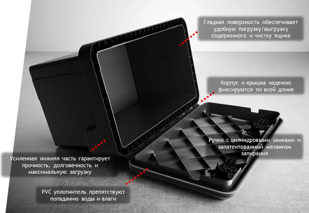 Серия WELVET - прочные и надежные ящики, изготовлены из высококачественного полипропилена - 4,0 мм, методом литьё под давлением. Линия WELVET - это эффективное решение для оснащения грузового и малотоннажного автотранспорта. Ящики устойчивы к высоким и низким температурам, пыле-влагонепроницаемый, устойчивы к UV лучам, пламени, горюче смазочным материалам. Утверждены VСА в качестве боковой защиты на транспорте. Оснащены - запатентованной запирающейся системой Europlex. Мах нагрузка 60 кг. Универсальный. Подходит для большинства малотоннажных автомобилей. Нередко ставятся на а/м Газель NEXT с длинной базой. Обратите внимание! Цена зависит от изменения курса валют, актуальную стоимость в день заказа уточняйте у нашего менеджера. Цена действительна при отгрузке с Москвы. В других городах цена может отличаться. Подробности уточняйте у менеджеров.